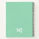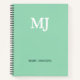 Un carnet vert menthe clair avec un monogramme audacieux, un article tendance et élégant.