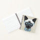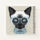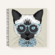 Ce design présente un chat siamois habillé d'une paire de lunettes bleues et d'une cravate arc à damiers.