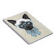 Caractéristiques de conception ce qu'un chat siamois s'est habillées dans une paire bleue des verres et de la cravate d'arc checkered.