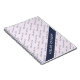 Un motif de texte de motivation qui indique "Boss Lady CEO" en lettres majuscules bleu foncé est placé à un angle de 45 degrés sur un fond délicat mauve clair. Un ruban de la même couleur bleu foncé est posé sur le motif selon le même angle, sur lequel vous pouvez placer votre nom (ou celui de la patronne spéciale à qui vous offrez ce cahier en cadeau). Vous pouvez réviser à la fois le motif de typographie unique et le nom sur le modèle de personnalisation (veillez simplement à ce que le texte du motif ne soit pas trop long pour tenir dans le cadre de texte).