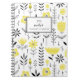 Carnet d'inspiration lunaire et scandinave. Il présente un motif floral noir et jaune. Personnalisez en ajoutant votre nom ou votre courte phrase. Ce carnet floral sera parfait comme cadeau personnalisé. Des éléments correspondants sont disponibles.
