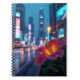 A modern glow flower blooms within a cityscape on this artistic notebook. This design contrasts organic beauty with urban geometry, perfect for journaling, sketching, or notes