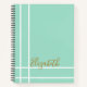 This custom name spiral notebook has a mint green cover and a customizable name in gold to personalize. Available in multiple sizes, the interior pages can be customized with your choice of page design for journaling or note taking.