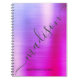 Modern, girly pink purple ombre metallic monogram script signature custom personalized spiral notebook. This feminine design featuring a faux hot pink purple ombre brushed metallic background, a huge hand-writing signature name or monogram text template. The name is written in a huge beautiful swirly hand lettered swash tail font style. Great feminine gift for girls and woman for school, home office, business, birthday, wedding, bridal shower, sweet 16 birthday party, or anyone who loves pretty girly modern style.