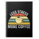 Toute personne qui aime le café et connaît l'effet qu'il a sur son niveau de stress va adorer ce design de café de style rétro sur des sacs, des tasses, des autocollants, des T-shirts, des coussins, et plus avec une tasse de café vapeur design avec le texte Moins de stress Plus de café!