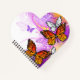 Orange, detailed monarch butterflies on light, purple, picturesque, painted background.
