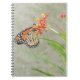 An orange and black Monarch butterfly sips nectar from a Tropical Milkweed bloom. On the Sam plant, a Monarch caterpillar, eats the leaves of it's preferred host planifie.