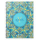 Carnet Monogram Blue Turquoise Floral Mandala Motif
