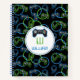 Carnet Monogramme à motif néon bleu et vert de jeu vidéo