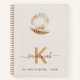 Arrière - plan beige. Décoré d'une coquille de mer aquarellée, coquilles Saint-Jacques avec une perle à l'intérieur. Personnalisez et ajoutez un nom, une lettre monogramme et une année. Le nom est écrit en blanc avec un grand script de style à la main moderne avec des swashes. La lettre monogramme en gris. Pour l'école, travaillez comme un carnet de croquis, un journal intime et un journal. Pour que les swashes ne suppriment que le nom de l'échantillon, laissez les espaces ou les émoticônes devant et après le nom
