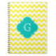 Carnet Monogramme blanc jaune Chevron Turquoise Quatrefoi