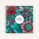 Carnet Monogramme, Bleu cyan, Rouge, Fleurs lunaires