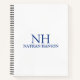 Carnet d'affaires moderne avec un design simple et minimaliste bleu et blanc avec votre monogramme en caractères gras avec votre nom sur le devant. Le dos contient vos coordonnées.