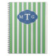 Carnet Monogramme Classique 3 Lettres Bandes Vert Bleu