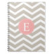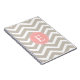 Customisez ce motif de chevron et monogramme rose pêche, brun et blanc brun et vif avec le nom de votre choix.