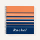 Des lignes horizontales de marine, de corail et de blanc ornent l'avant de ce carnet. Personnalisez l'avant avec votre nom, initiale, devis ou laissez-le simplement montrer le design.