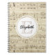 Vieux partitions vintages manuscrites à l'encre noire sur un parchemin beige antique aux notes. Des souvenirs d'il y a longtemps, quand la musique était écrite à la main à l'encre. Un cercle superposé avec votre nom et votre monogramme initial à l'intérieur.