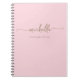 Cahier à spirale élégant de couleur rose avec monogramme doré et nom féminin, écriture signature. Ce design minimaliste de couleur unie présente votre prénom dans une jolie typographie de lettrage manuscrit avec des fioritures et un nom en or sur un fond rose pastel ou rose blush clair. Facile à personnaliser. Cadeau personnalisé idéal pour une fête d'anniversaire, une baby shower, un mariage, un anniversaire Sweet 16, et pour quiconque aime le style minimaliste et féminin.