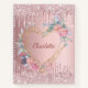 Un arrière - plan métallique rose vif. Faux gouttes de parties scintillant, la peinture goutte à goutte comme décoration. Un coeur doré orné de fleurs roses. Personnalisez et ajoutez un nom. Le nom est écrit un rose moderne couleur or foncé écriture manuscrite. Parfait pour les devoirs scolaires, retour à l'école.