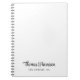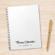 Carnet blanc moderne pour votre usage personnel ou professionnel avec votre nom ou marque monogramme présenté dans un script de signature élégant et votre texte personnalisé ci-dessous en lettres simples.