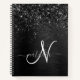 Carnet Monogramme d'étincelle à Parties scintillant noire