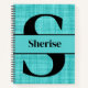 Ce cahier modifiable présente un nom et une initiale sur un fond bleu texturé. L'initiale et le nom sont tous deux modifiables, alors n'hésitez pas à modifier les détails ainsi que le style, la taille et la couleur de la police !