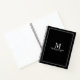 Le carnet professionnel dispose de monogramme personnalisé, nom et texte en style de police serif classique blanc avec bordure blanche sur arrière - plan noir.