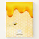 Arrière - plan jaune, blanc avec un motif abeille et joyeux bourdons souriants abeilles. Décoré avec du miel doré doux qui dégouline. Personnalisez et ajoutez votre nom, vos initiales monographiques et un titre en lettres dorées et noires. Le nom est écrit avec un script de style écrit à la main. Utilisez-le comme un sketchook, pour prendre des notes, travailler à l'école.