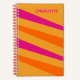 carnet personnalisé monogramme vintage rétro super des années 1970. Bandes audacieuses en orange, rose et moutarde. Personnalisez cette typographie stylée et colorée.