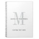 Ce design de livres de notes présente un style épuré et minimal avec un grand monogramme gris dans l'arrière - plan pour une touche audacieuse mais élégante. L'avant met en surbrillance le nom et le texte personnalisé dans une police moderne propre.