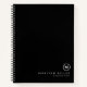 Le cahier moderne présente un design minimaliste dans une palette de couleurs noir et blanc classique. Le nom personnalisé est présenté dans le coin inférieur droit dans une police simple et élégante avec un médaillon à monogramme minimal complémentaire.