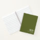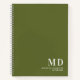 Un cahier professionnel moderne et élégant dans un riche vert olive avec vos initiales de monogramme et le nom de votre entreprise dans une typographie blanche simple