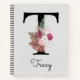 Carnet Monogramme initial T rose Boho Girly Floral