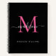 Carnet Monogramme moderne Black Hot Rose Girl Nom du scri