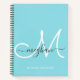 Carnet en spirale monogrammé personnalisé moderne, tendance, bleu clair et blanc. Ce design simple et élégant présente un nom de prénom cursif avec des pointes en gris et un énorme script monogramme écrit à la main en blanc sur bleu clair, aqua ou bleu clair arrière - plan turquoise. Ce carnet féminin et joli est une idée cadeau parfaite pour les affaires, les professionnels, l'école, la fête d'anniversaire, le mariage et toute fête ou occasion pour quelqu'un qui aime les styles girly et moderne. Si vous avez besoin d'aide ou d'un article correspondant, veuillez contacter le concepteur.