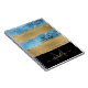 Carnet d'impression métallique bleu clair et moderne en traits de brosse avec or, parties scintillant, noir et orné de votre monogramme de script, prénom et initiale.