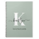 Ce carnet en spirale simple et élégant de sauge vert 6,5 x 8,75 avec votre prénom dans une police de script tendance en noir, votre première initiale dans une police de casquette moderne en blanc, et vos prénoms et vos prénoms en casquette en blanc sont parfaits pour vous. C'est design, tendance et pourtant très classique. Il sera utile dans tant de situations. Parfait pour le travail, la maison, l'école, le journalisme.