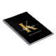 Ce carnet en spirale noir simple et élégant de 6,5 x 8,75 avec votre prénom dans une police de script tendance en blanc, votre première initiale dans une police de casquette moderne en or, et vos prénoms et vos prénoms en casquette en blanc sont parfaits pour vous. C'est design, tendance et pourtant très classique. Il sera utile dans tant de situations. Parfait pour le travail, la maison, l'école, le journalisme.
