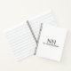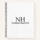 Carnet d'affaires moderne avec un design noir et blanc simple et minimal avec votre monogramme en caractères gras avec votre nom sur le devant. Le dos contient vos coordonnées.