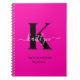 Ce carnet en spirale simple, élégant et rose chaud 6,5 x 8,75 avec votre prénom dans une police de script tendance en blanc, votre première initiale dans une police de casquette moderne en noir, et vos prénoms et vos prénoms en casquette en noir sont parfaits pour vous. C'est design, tendance et pourtant très classique. Il sera utile dans tant de situations. Parfait pour vos doodles et croquis.