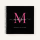 Élégant noir Hot Magenta rose Monogramme initial moderne Script calligraphie Nom Carnet