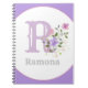 La conception présente le monogramme et le nom du destinataire avec des fleurs de chaque côté dans un style pastel à l'aquarelle. L'initiale est la lettre R.