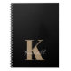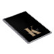 Carnet noir moderne minimaliste avec votre monogramme initial dans une police or audacieuse et tendance et votre nom dans un élégant script blanc fin. Vous pouvez ajuster la taille de la police de script en fonction de la longueur de votre nom dans l'outil de conception.