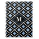 Sakura d'inspiration orientale personnalisée avec deux pétales de fleurs de cerisier bleus sur un motif diamant horizontal noir et blanc. Entièrement personnalisable avec votre monogramme.