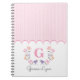 Carnet Monogramme rayures florales roses