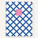 Des trellis en bambou bleu et blanc de preppy répètent le motif avec une couleur d'accent rose pour le monogramme. Veuillez noter que vous pouvez changer le bleu en n'importe quelle couleur / teinte que vous voulez en entrant l'outil de conception et en changeant simplement la couleur arrière - plan sur la conception. Pour accéder à l'outil de conception, cliquez sur / appuyez sur pour "customiser plus loin". Vous ne pouvez pas changer le blanc ou le rose en d'autres couleurs.