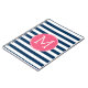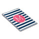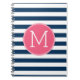 Carnet Monogramme rose chaud Motif rayé blanc et marine