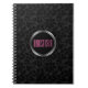 Elégant et simple noir monochromatique motif floral damassé et cercle noir argenté. Touche de rose. monogramme personnalisé