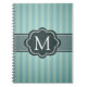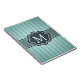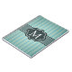 Motif rayé bleu turquoise masculin et élégant avec la conception de cadre de bannière au milieu pour votre initiale personnalisée de monogramme.