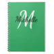 Carnet Monogramme vert minimal pour fille Nom et initiale